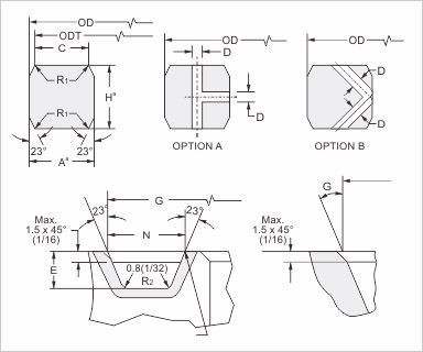 在SBX環(huán)截面兩壓力通道孔防止壓力鎖時(shí),連接是由水下。提供鉆井壓力通道孔兩種選擇。一個(gè)加寬容0,2 mm(0008)寬度和高度是允許的,只要在任何環(huán)的寬度或高度變化不超過(guò)0.1毫米(0004)沿整個(gè)圓周。